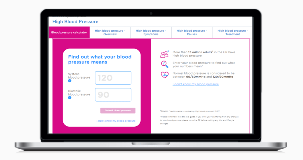 An engaging and interactive tool that helps users understand what their blood pressure could mean based on a few simple questions.